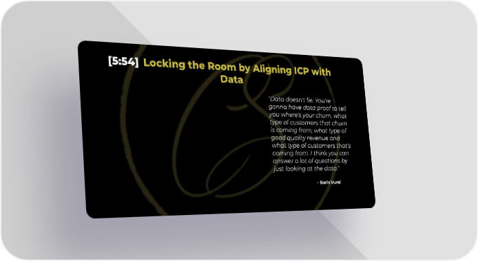[5:54] Locking the Room by Aligning ICP with Data "Data doesn't lie. You're gonna have data proof to tell you where's your churn, what type of customers that churn is coming from, what type of good quality revenue and what type of customers that's coming from. I think you can answer a lot of questions by just looking at the data." – Baris Vural