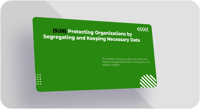 (5:26) Protecting Organizations by Segregating and Keeping Necessary Data “If we keep unnecessary data, we amplify the impact of a potential breach, making every lost record a liability.”