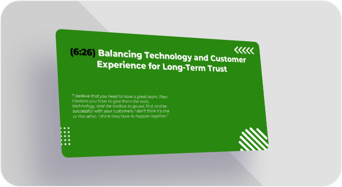 (6:26) Balancing Technology and Customer Experience for Long-Term Trust “I believe that you need to have a great team. Then I believe you have to give them the tools, technology, and the toolbox to go out, find, and be successful with your customers. I don't think it's one or the other. I think they have to happen together.”