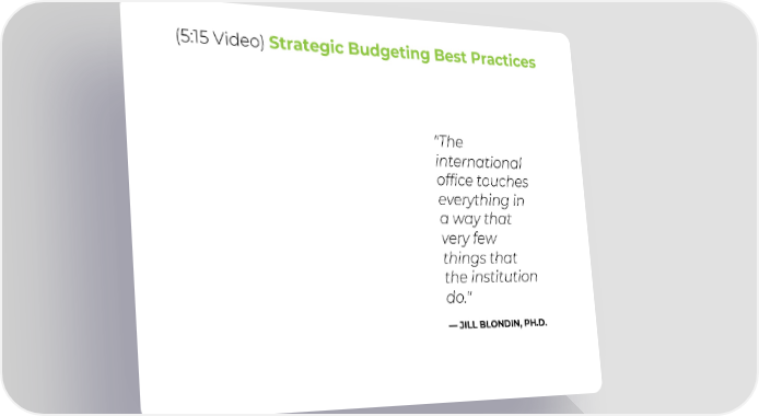 (5:15 Video) Strategic Budgeting Best Practices "The international office touches everything in a way that very few things that the institution do." —JILL BLONDIN, PH.D.