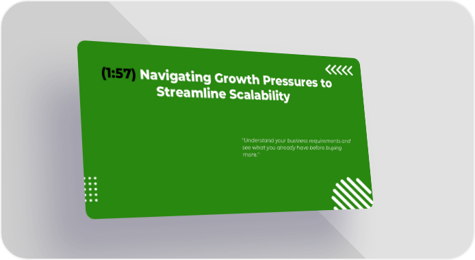 (1:57) Navigating Growth Pressures to Streamline Scalability "Understand your business requirements and see what you already have before buying more."