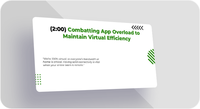 (2:00) Combatting App Overload to Maintain Virtual Efficiency "We’re 100% virtual, so everyone’s bandwidth at home is critical. Having solid connectivity is vital when your entire team is remote."