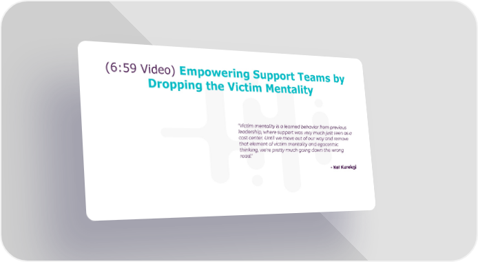 (6:59 Video) Empowering Support Teams by Dropping the Victim Mentality "Victim mentality is a learned behavior from previous leadership, where support was very much just seen as a cost center. Until we move out of our way and remove that element of victim mentality and egocentric thinking, we're pretty much going down the wrong road." - Kel Kurekgi
