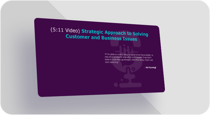(5:11 Video) Strategic Approach to Solving Customer and Business Issues "If I'm able to craft a story around what the problem is, why it's a problem, and what will happen if we don't solve it, and then go straight into that story, doors will start opening." - Kel Kurekgi