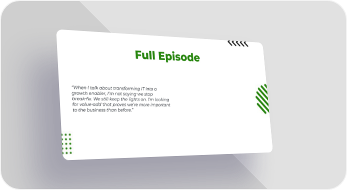 Full Episode “When I talk about transforming IT into a growth enabler, I’m not saying we stop break‑fix. We still keep the lights on. I’m looking for value‑add that proves we’re more important to the business than before.”