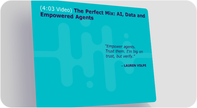 Lauren Volpe - "Creating Contact Centers that Directly Impact Company Performance" Page 7 Page 9(4:03 Video) The Perfect Mix: AI, Data and Empowered Agents “Empower agents. Trust them. I’m big on trust, but verify.” —LAUREN VOLPE