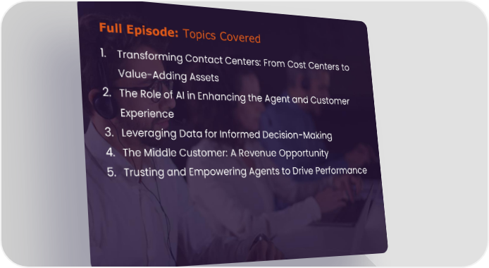 Full Episode: Topics Covered 1. Transforming Contact Centers: From Cost Centers to Value-Adding Assets 2. The Role of AI in Enhancing the Agent and Customer Experience 3. Leveraging Data for Informed Decision-Making 4. The Middle Customer: A Revenue Opportunity 5. Trusting and Empowering Agents to Drive Performance