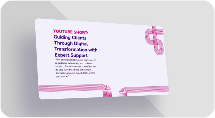 YOUTUBE SHORT: Guiding Clients Through Digital Transformation with Expert Support “Part of our product is a very high level of consultative onboarding and continued support. Since it is not our clients' job, nor do they have the liberty of having an alternative data set expert, that's where we come in.”