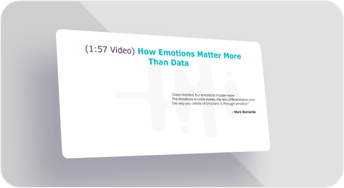 (1:57 Video) How Emotions Matter More Than Data “Data matters, but emotions matter more. The database is table stakes, the real differentiation and the way you create champions, is through emotion.” - Mark Bernardo