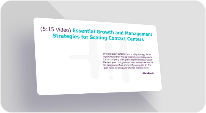 (5:15 Video) Essential Growth and Management Strategies for Scaling Contact Centers “BPO is a great addition to a scaling strategy for an organization that will be experiencing rapid growth. If your company anticipates significant growth over the next year or so, you also need to consider how AI fits into your culture and what you need to do. This goes hand-in-hand with change management.” - Mark Brody