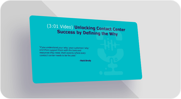 (3:01 Video) Unlocking Contact Center Success by Defining the Why "If you understand your 'why,' your customers' 'why,' and then support them with the tools and resources they need, that’s exactly where every contact center needs to be focused.“ - Mark Brody
