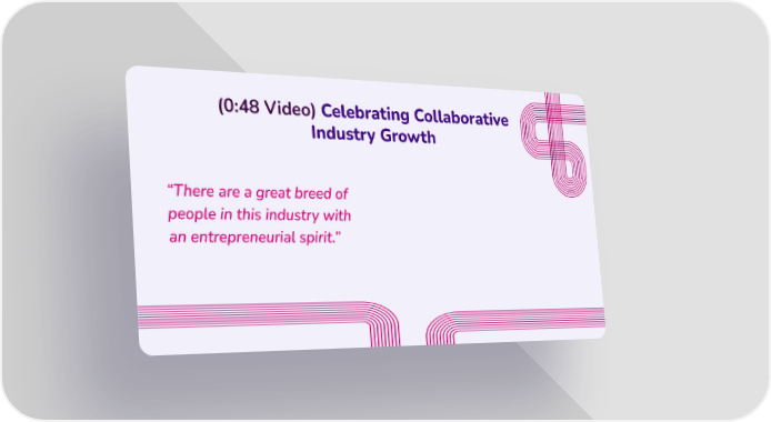 (0:48 Video) Celebrating Collaborative Industry Growth “There are a great breed of people in this industry with an entrepreneurial spirit.”