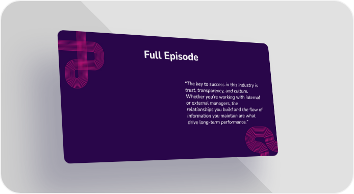 Full Episode “The key to success in this industry is trust, transparency, and culture. Whether you’re working with internal or external managers, the relationships you build and the flow of information you maintain are what drive long-term performance.”