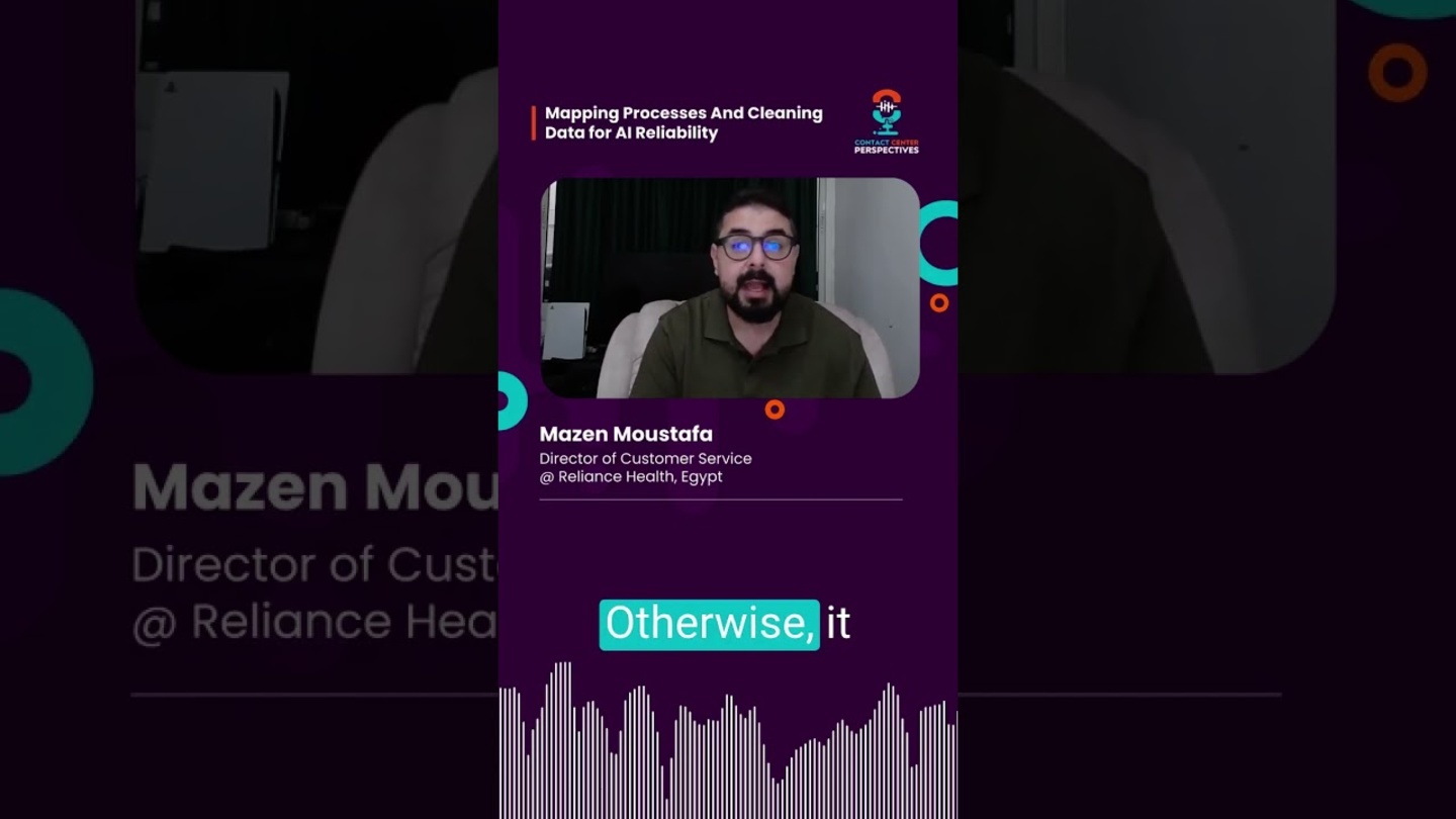 YOUTUBE SHORT: Mapping Processes And Cleaning Data for AI Reliability βFor you to have a solid working AI agent or AI tool or AI-driven process, you need to have lots of proper infrastructure installed and set up properly. Otherwise, it will just give you irrelevant answers, delayed responses, or simply it will fail.β - MAZEN MOUSTAFA