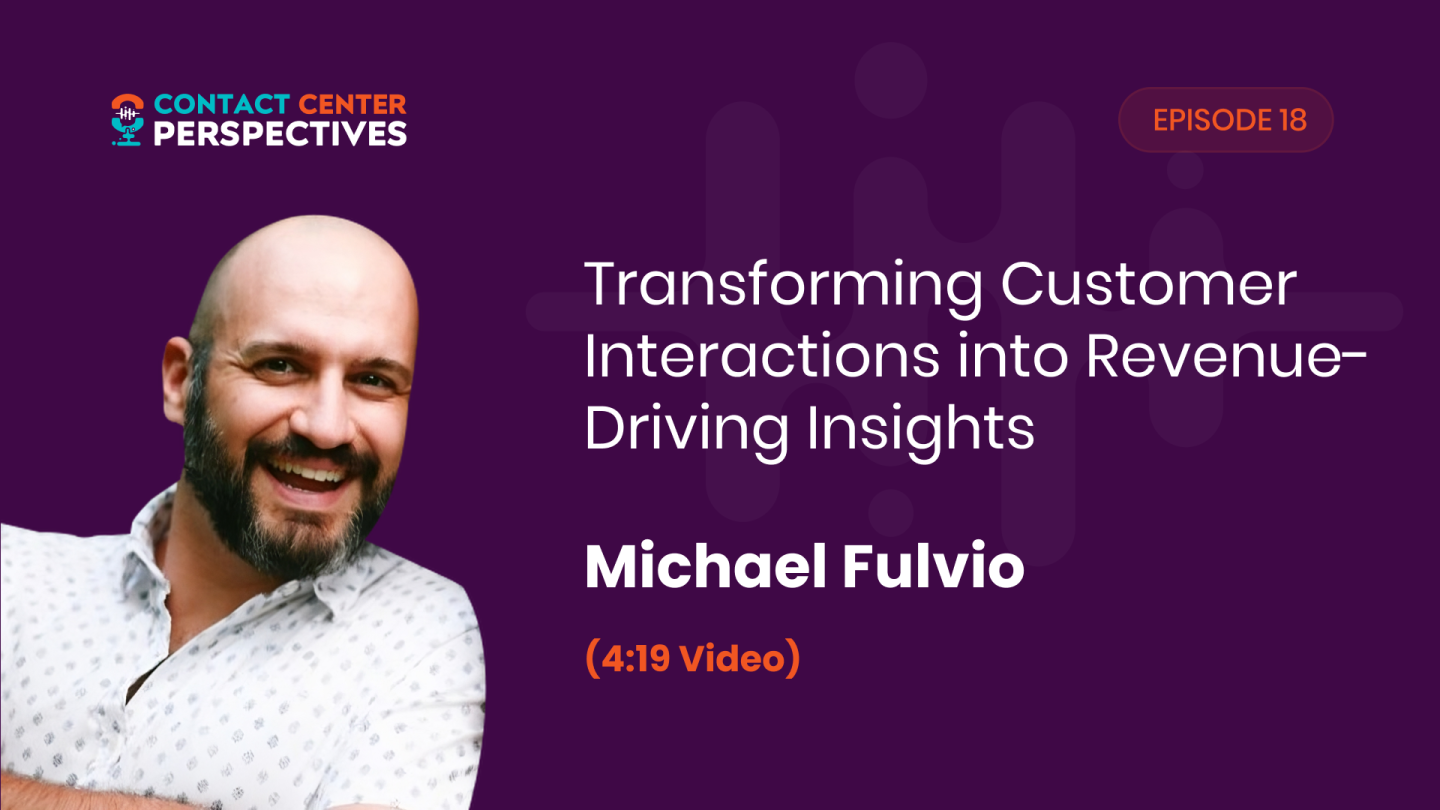 (4:19 Video) Transforming Customer Interactions into Revenue-Driving Insights “There's a cost associated with having a contact center and managing all these interactions. However, if you can correlate these interactions directly to revenue, both in terms of saving and growing it, you flip the equation. You become a revenue advisor to the rest of the company, rather than just a cost center.” —MICHAEL FULVIO