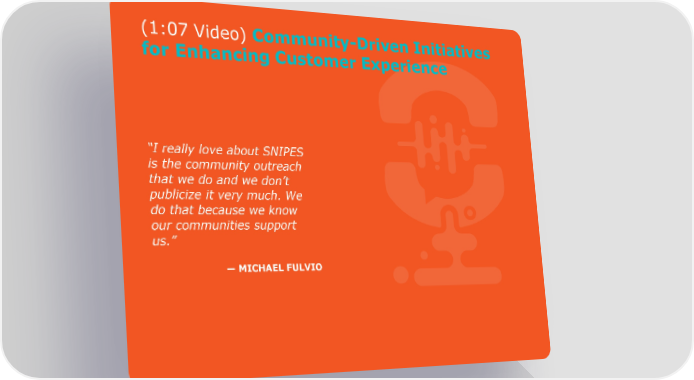 (1:07 Video) Community-Driven Initiatives for Enhancing Customer Experience “I really love about SNIPES is the community outreach that we do and we don’t publicize it very much. We do that because we know our communities support us.” —MICHAEL FULVIO