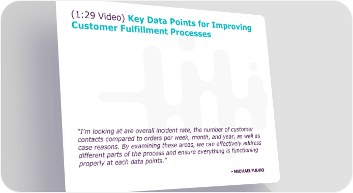 (1:29 Video) Key Data Points for Improving Customer Fulfillment Processes “I’m looking at are overall incident rate, the number of customer contacts compared to orders per week, month, and year, as well as case reasons. By examining these areas, we can effectively address different parts of the process and ensure everything is functioning properly at each data points.” -MICHAEL FULVIO