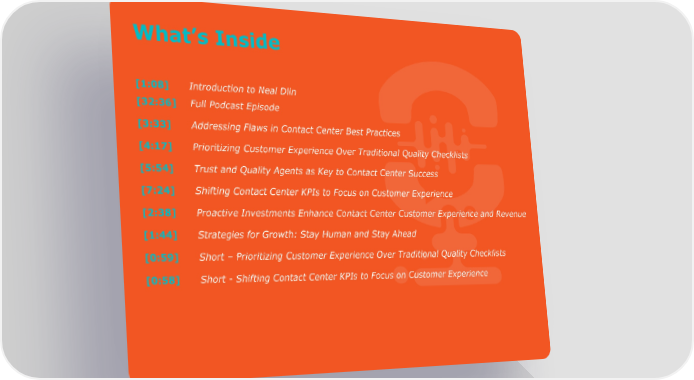 What’s Inside [1:08] Introduction to Neal Dlin [32:36] Full Podcast Episode [3:33] Addressing Flaws in Contact Center Best Practices [4:17] Prioritizing Customer Experience Over Traditional Quality Checklists [5:54] Trust and Quality Agents as Key to Contact Center Success [7:24] Shifting Contact Center KPIs to Focus on Customer Experience [2:38] Proactive Investments Enhance Contact Center Customer Experience and Revenue [1:44] Strategies for Growth: Stay Human and Stay Ahead [0:59] Short – Prioritizing Customer Experience Over Traditional Quality Checklists [0:58] Short - Shifting Contact Center KPIs to Focus on Customer Experience
