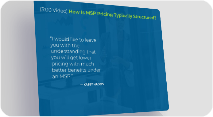 (3:00 Video) How Is MSP Pricing Typically Structured? “I would like to leave you with the understanding that you will get lower pricing with much better benefits under an MSP.” —KASEY HADJIS