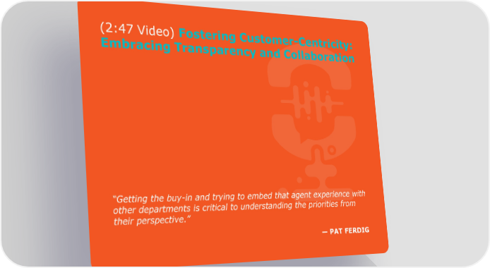 (2:47 Video) Fostering Customer-Centricity: Embracing Transparency and Collaboration “Getting the buy-in and trying to embed that agent experience with other departments is critical to understanding the priorities from their perspective.” —PAT FERDIG