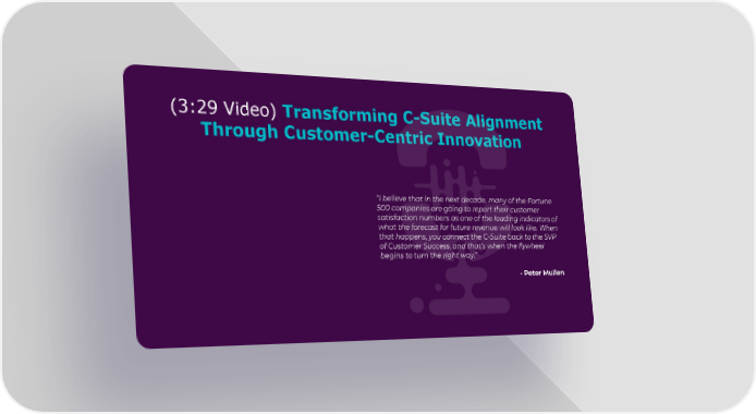 (3:29 Video) Transforming C-Suite Alignment Through Customer-Centric Innovation “I believe that in the next decade, many of the Fortune 500 companies are going to report their customer satisfaction numbers as one of the leading indicators of what the forecast for future revenue will look like. When that happens, you connect the C-Suite back to the SVP of Customer Success, and that’s when the flywheel begins to turn the right way.” - Peter Mullen