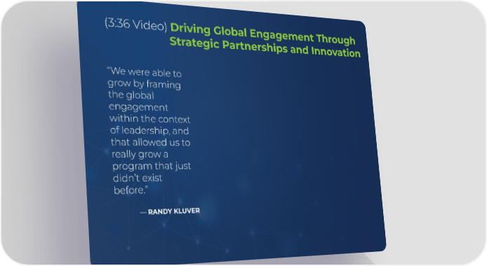 (3:36 Video) Driving Global Engagement Through Strategic Partnerships and Innovation “We were able to grow by framing the global engagement within the context of leadership, and that allowed us to really grow a program that just didn’t exist before.” — RANDY KLUVER