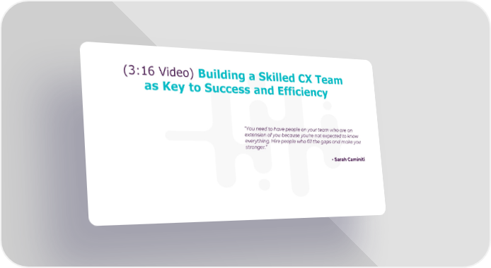 (3:16 Video) Building a Skilled CX Team as Key to Success and Efficiency “You need to have people on your team who are an extension of you because you're not expected to know everything. Hire people who fill the gaps and make you stronger.” - Sarah Caminiti