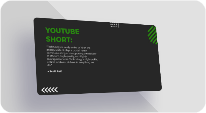YOUTUBE SHORT: “Technology is easily a nine or 10 on the priority scale. It plays a crucial role in communicating and supporting the delivery of efficient, high-quality, and highly leveraged services. Technology is high-profile, critical, and a must-have in everything we do.” – Scott Reid