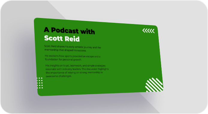 EPISODE: A Podcast with Scott Reid Scott Reid shares his early athletic journey and the mentorship that shaped his success. He explains how sports provided an escape and a foundation for personal growth. His insights on trust, teamwork, and simple strategies resonate with industry leaders. The discussion highlights the importance of relying on strong mentorship to overcome challenges.