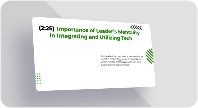 (2:25) Importance of Leader’s Mentality in Integrating and Utilizing Tech “I've worked for people who were willing to invest in technology when I asked them to, which further promoted expansion and other growth opportunities.”