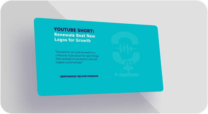 YOUTUBE SHORT: Renewals Beat New Logos for Growth “Renewal to me is just an event or a milestone. If you do all the right things, then renewal is a no-brainer and will happen automatically.” - SENTHAMIZH SELVAN PANDIAN