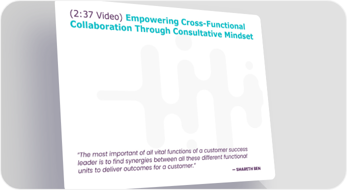 (2:37 Video) Empowering Cross-Functional Collaboration Through Consultative Mindset “The most important of all vital functions of a customer success leader is to find synergies between all these different functional units to deliver outcomes for a customer.” — SHARETH BEN