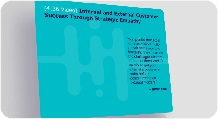 (4:36 Video) Internal and External Customer Success Through Strategic Empathy "Companies that excel remove internal friction in their processes and handoffs. They focus on the challenges directly in front of them, and it's crucial to get your internal processes in order before concentrating on external matters." — SHARETH BEN