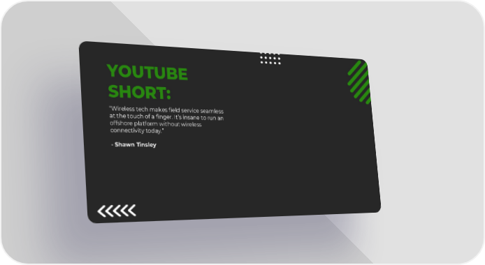14 YOUTUBE SHORT: “Wireless tech makes field service seamless at the touch of a finger. It’s insane to run an offshore platform without wireless connectivity today.” - Shawn Tinsley