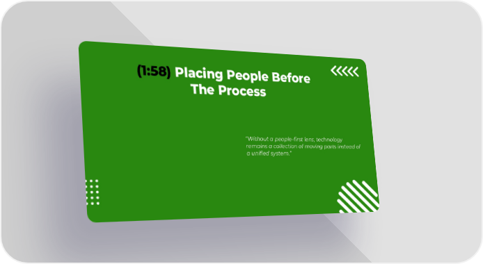 “Without a people-first lens, technology remains a collection of moving parts instead of a unified system.” (1:58) Placing People Before The Process