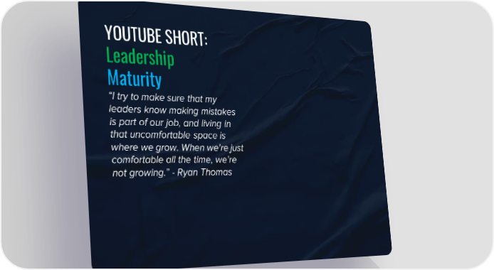 YOUTUBE SHORT: Leadership Maturity “I try to make sure that my leaders know making mistakes is part of our job, and living in that uncomfortable space is where we grow. When we're just comfortable all the time, we're not growing.” - Ryan Thomas