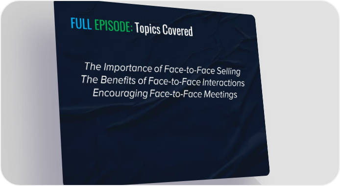 FULL EPISODE: Topics Covered The Importance of Face-to-Face Selling The Benefits of Face-to-Face Interactions Encouraging Face-to-Face Meetings