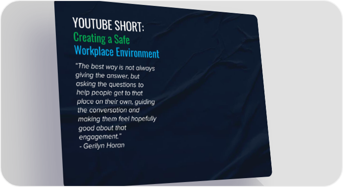 YOUTUBE SHORT: Creating a Safe Workplace Environment βThe best way is not always giving the answer, but asking the questions to help people get to that place on their own, guiding the conversation and making them feel hopefully good about that engagement.β - Gerilyn Horan