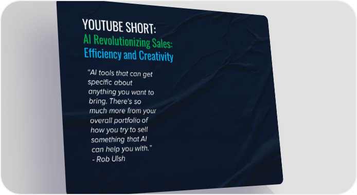 YOUTUBE SHORT: AI Revolutionizing Sales: Efficiency and Creativity “AI tools that can get specific about anything you want to bring. There's so much more from your overall portfolio of how you try to sell something that AI can help you with.” - Rob Ulsh