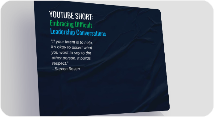 YOUTUBE SHORT: Embracing Di昀케cult Leadership Conversations “If your intent is to help, it's okay to assert what you want to say to the other person. It builds respect.” - Steven Rosen