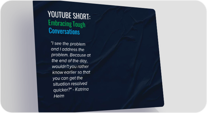 YOUTUBE SHORT: Embracing Tough Conversations "I see the problem and I address the problem. Because at the end of the day, wouldn't you rather know earlier so that you can get the situation resolved quicker?" - Katrina Heim