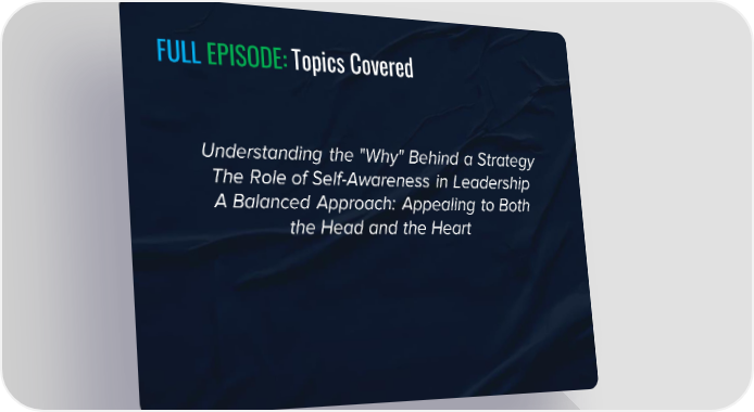 FULL EPISODE:Topics Covered Understanding the "Why" Behind a Strategy The Role of Self-Awareness in Leadership A Balanced Approach: Appealing to Both the Head and the Heart