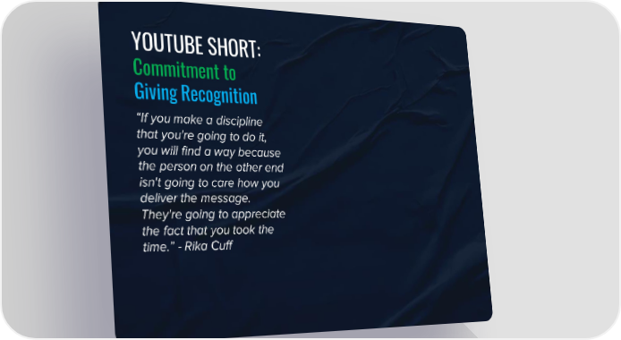 YOUTUBE SHORT: Commitment to Giving Recognition “If you make a discipline that you're going to do it, you will find a way because the person on the other end isn't going to care how you deliver the message. They're going to appreciate the fact that you took the time.” - Rika Cuff