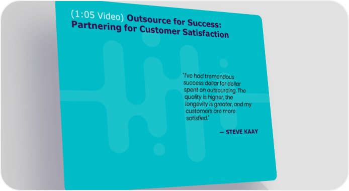(1:05 Video) Outsource for Success: Partnering for Customer Satisfaction “I've had tremendous success dollar for dollar spent on outsourcing. The quality is higher, the longevity is greater, and my customers are more satisfied.” —STEVE KAAY