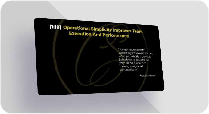 [1:10] Operational Simplicity Improves Team Execution And Performance “Sometimes we create complexity unnecessarily, but when you whittle it down, it boils down to focusing on your simple funnel and making sure you all communicate.” – Vidhya Srinivasan