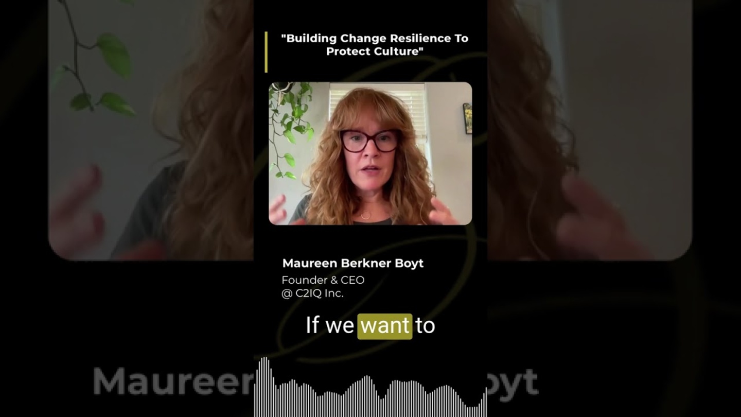YOUTUBE SHORT: “If we want to have these cultures where people can come and become the best version of themselves, and continue to have incremental change, we really need to address change resilience skills and human connection skills, because those skills are critically important for your people to be able to show up and deliver great business results.” – Maureen Berkner Boyt