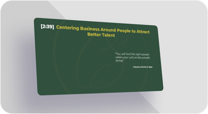 [2:39] Centering Business Around People to Attract Better Talent “You will find the right people when your culture lets people thrive.” – Maureen Berkner Boyt