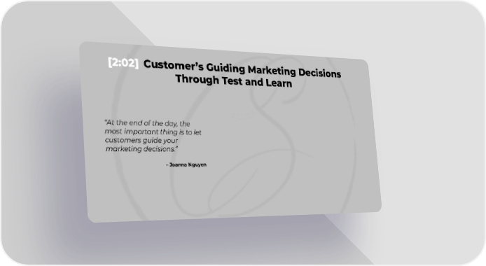 [2:02] Customer’s Guiding Marketing Decisions Through Test and Learn “At the end of the day, the most important thing is to let customers guide your marketing decisions.” – Joanna Nguyen