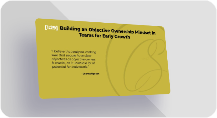 [1:29] Building an Objective Ownership Mindset in Teams for Early Growth "I believe that early on, making sure that people have clear objectives as objective owners is crucial, as it unlocks a lot of potential for individuals.” – Joanna Nguyen