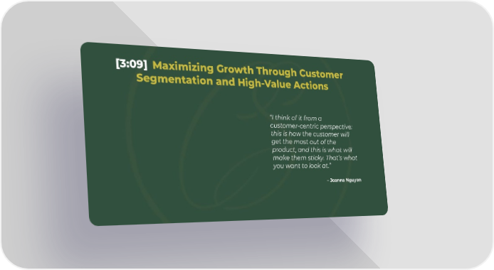 [3:09] Maximizing Growth Through Customer Segmentation and High-Value Actions “I think of it from a customer-centric perspective: this is how the customer will get the most out of the product, and this is what will make them sticky. That’s what you want to look at.” – Joanna Nguyen
